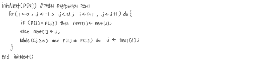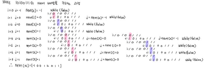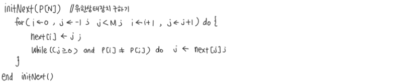 이해를 하기 위해 next배열을 구하는 동작 과정을 나타내었다.